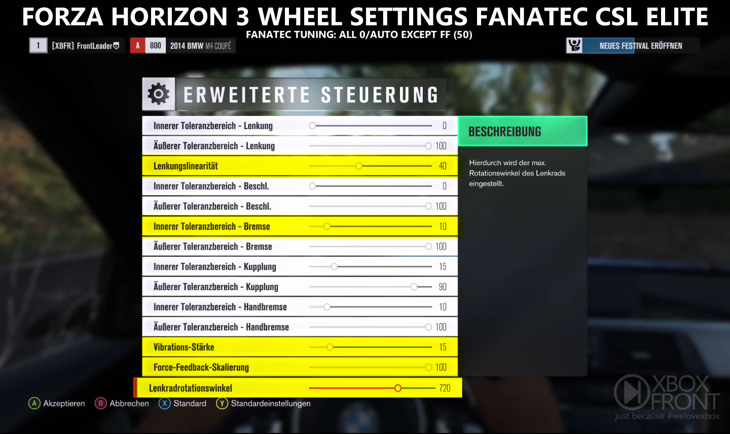 So, hier mal was Brauchbares. Wird sich sicherlich noch geringfügig ändern aber kann man erst mal nutzen. Ich hab extra fast ausschließlich die Ingame-Einstellungen genommen, da ja nicht jedes Wheel so viele Tuningmöglichkeiten hat. Das FF hab ich im Wheel auf 50% im Wheel. "Auto" war mir etwas zu schwach auf der Straße.