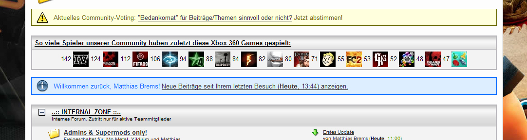 Die Gamercards sind vorerst ausgeschaltet, es gibt noch immer Probleme mit den dafür zuständigen Server, außerdem zerschießt irgendwas im Zusammenhang mit diesen den CSS-Code.
