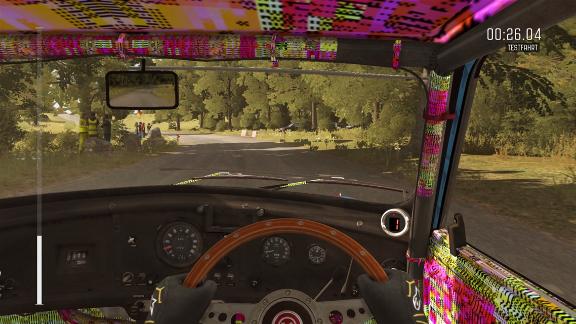 Ich habe mir heute auch das Spiel geholt und im Cockpit ist überall rosa-rote Blöckchenbildung, wass so rumzuckt. Aber eben nur in der Cockpit Ansicht, das geht bis über den Scheibenwischer. Ich benutze aber das Mad Catz Lenkrad. Und es ist bei diesen Mini Cooper zu erkennen, was als DLC dabei gewesen ist. Beim nächsten Rennen mit einem anderen Auto war es wieder weg, komisch. Vielleicht liegt es nur an dem Mini Cooper.