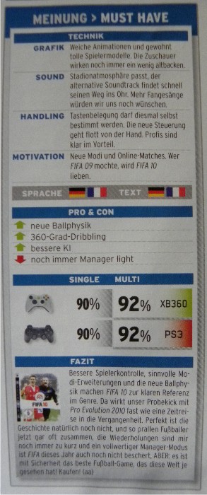 wozu braucht man jetzt noch Fifa Manager 2010?" ... wenigstens hat Fifa das bekommen was die Entwickler angestrebt haben.. ne 90% Wertung