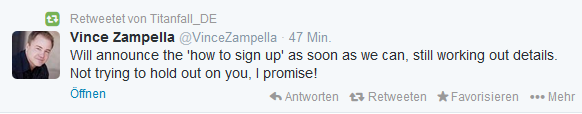 Jetzt aber brachte Vince Zampella, einer der Gründer von Respawn Entertainment, zumindest etwas Licht in die Angelegenheit. Via Twitter stellte er klar, dass für einen Zugang zum Beta-Test definitiv keine Vorbestellung von Titanfall notwendig sein wird. Konkretere Informationen konnte oder wollte er jedoch nicht preisgeben. Diese sollen allerdings schon bald folgen.