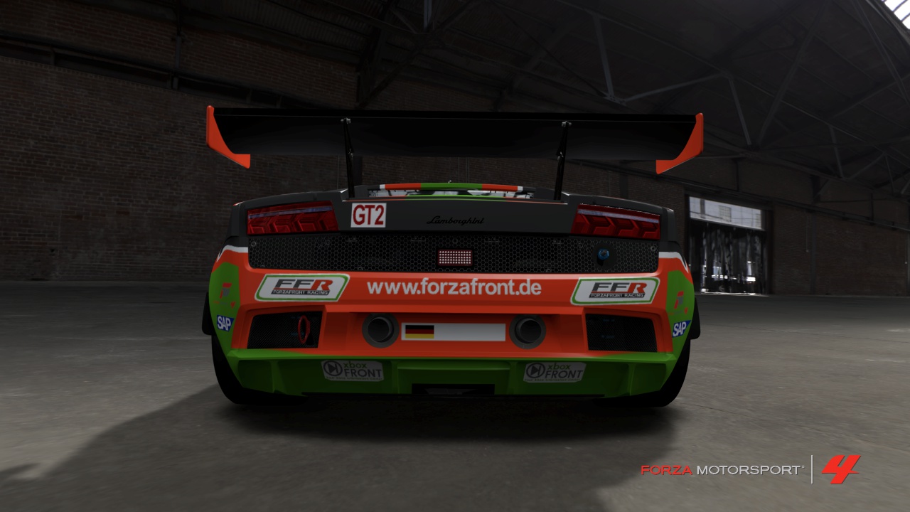 Und hier der Lambo für das FFR GT2 Team mit den vorläufigen Gamertags. Hier gilt Gleiches für Änderungswünsche und das Design wird ebenfalls mit Platzhaltern verschenkt.