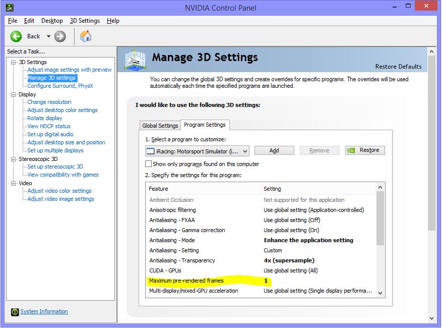 Btw: Probeir ich mal aus mit den prerendered fps 1... Nervt ganz schön dieses stottern manchmal in iRacing...