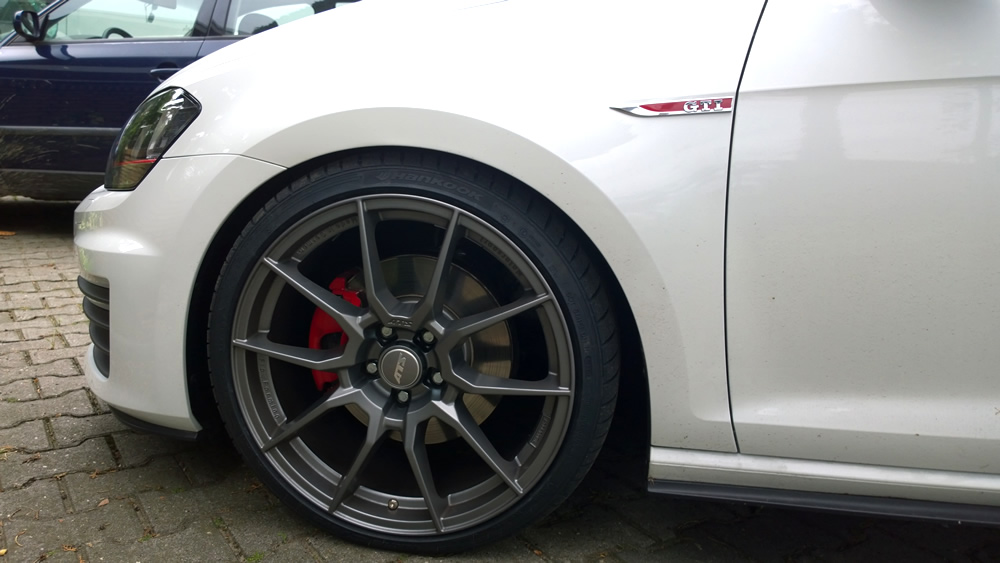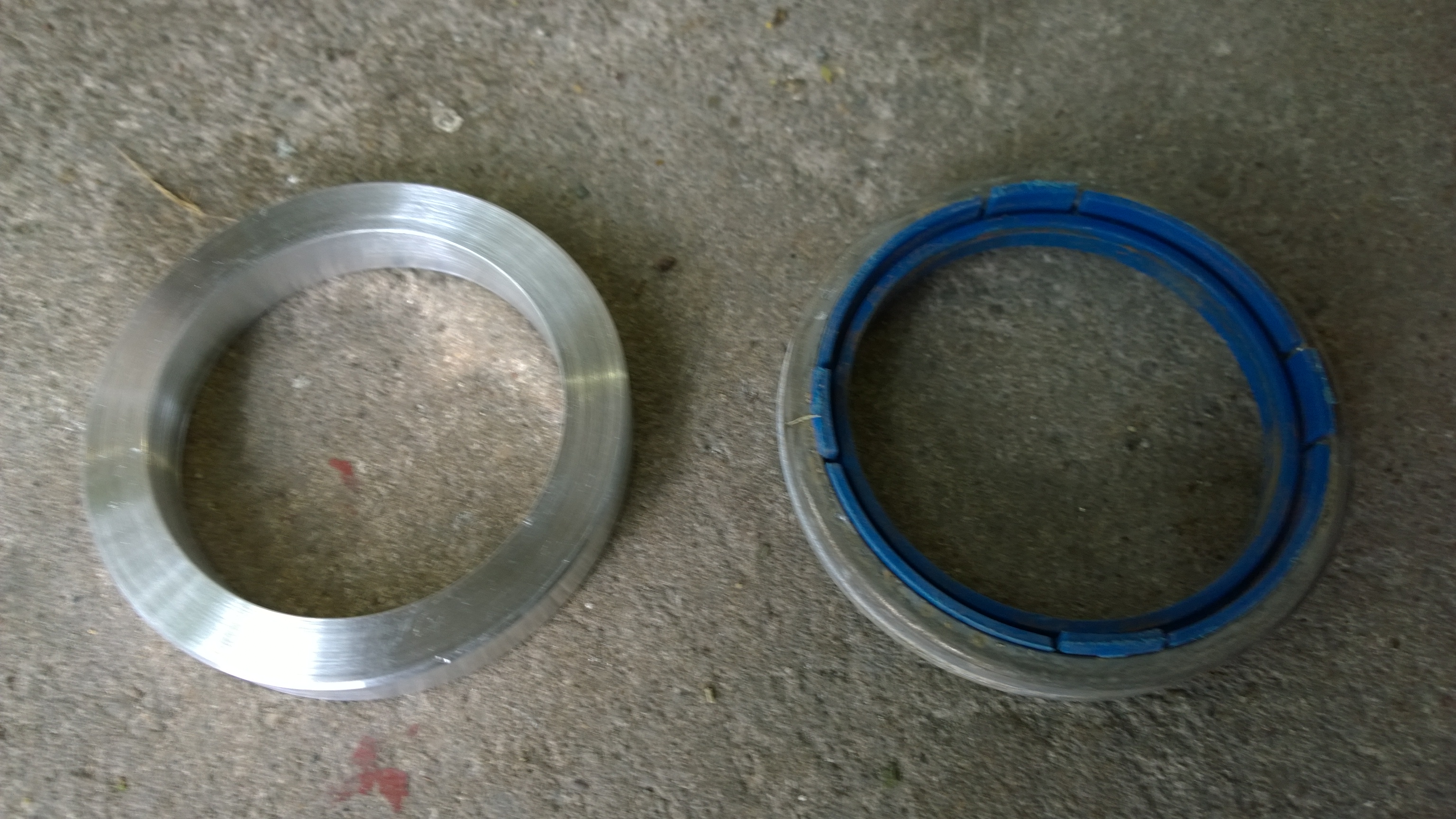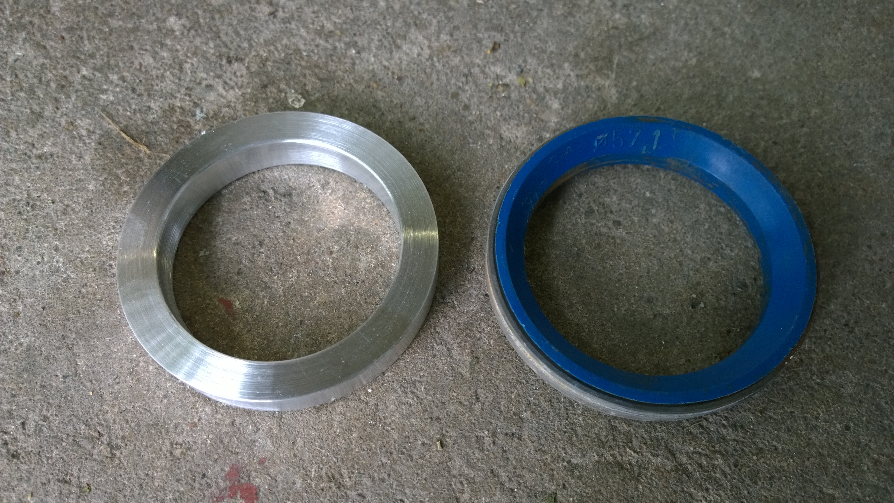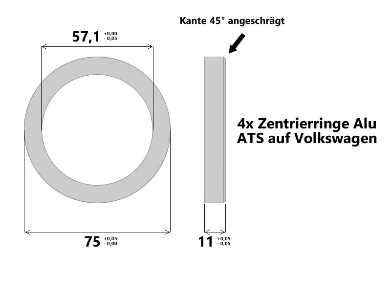 So... endlich montiert. Zentrierringe "selfmade" ATS auf Volkswagen (75 -> 57,1). Das Problem war, dass die originalen zweiteiligen Ringe nicht korrekt saßen sondern etwa 0,8mm Spiel hatten. Außerdem war dir Auflagefläche durch die breite Anschrägung sehr klein, dadurch konnte man die Felge in Verwendung mit meinen Distanzscheiben an der HA nicht korrekt zentrieren. Jetzt sitzt alles 1A