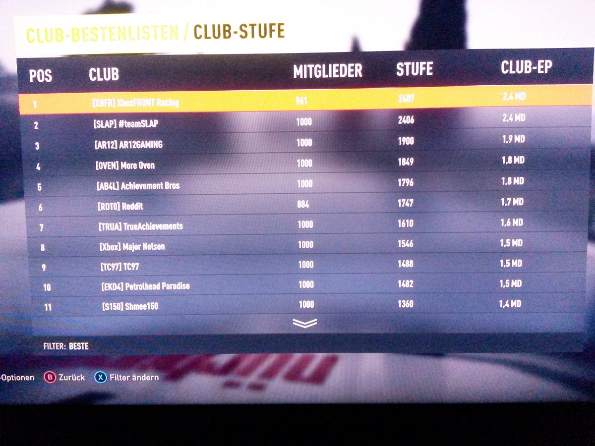 Ich habe mir vor einem Monat die XB1 gekauft und als erstes FH2 geholt. Dank dem Club habe ich nun einige Gleichgesinnte kennengelernt und das Zusammenspielen macht einfach riesig Laune - obwohl ich nie Rennspielfan war! Es wäre echt cool, wenn wir auch weiterhin - gerne auch in anderen Games - zusammenspielen und einfach Spaß hat. Echt geil Leute!