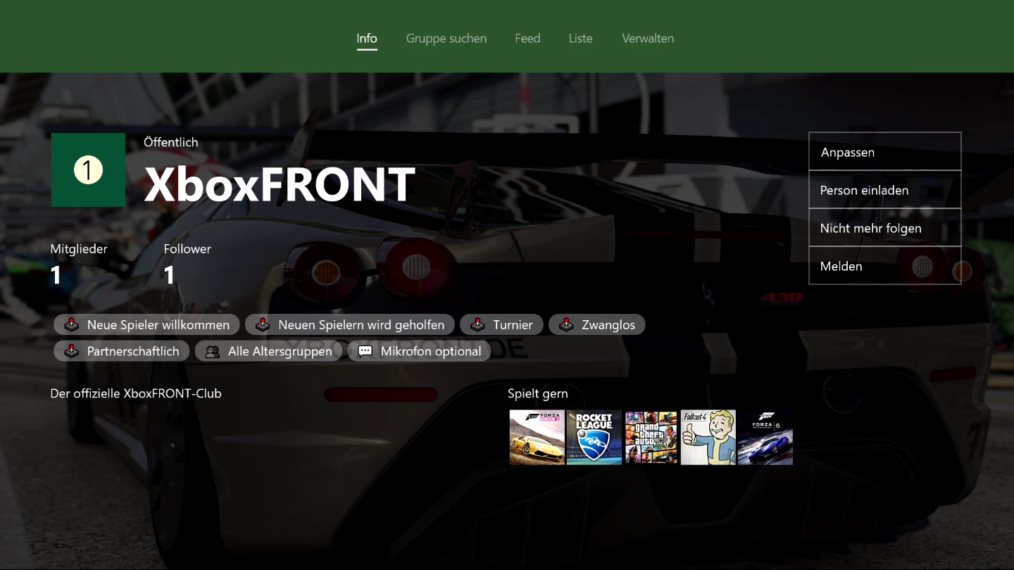 In den beiden Clubs "XboxFRONT" und "XBFR Racing" werden wir zukünftig zahlreiche Community-Aktionen ausrichten und euch die Möglichkeit geben, noch leichter an unseren offiziellen Veranstaltungen teilzunehmen... direkt über eure Xbox und Xbox App auf Windows 10 und Windows 10 Mobile.
