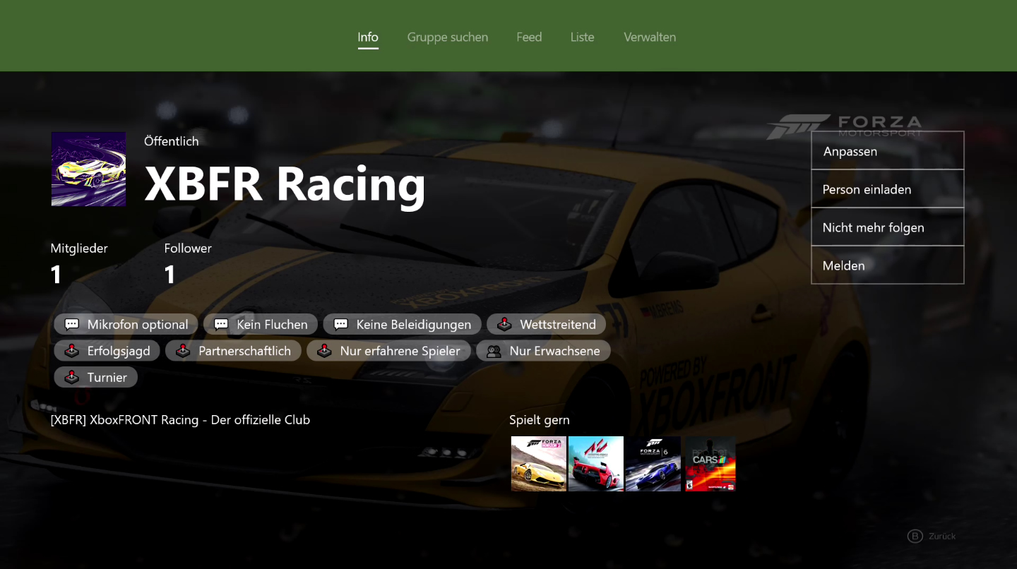 In den beiden Clubs "XboxFRONT" und "XBFR Racing" werden wir zukünftig zahlreiche Community-Aktionen ausrichten und euch die Möglichkeit geben, noch leichter an unseren offiziellen Veranstaltungen teilzunehmen... direkt über eure Xbox und Xbox App auf Windows 10 und Windows 10 Mobile.