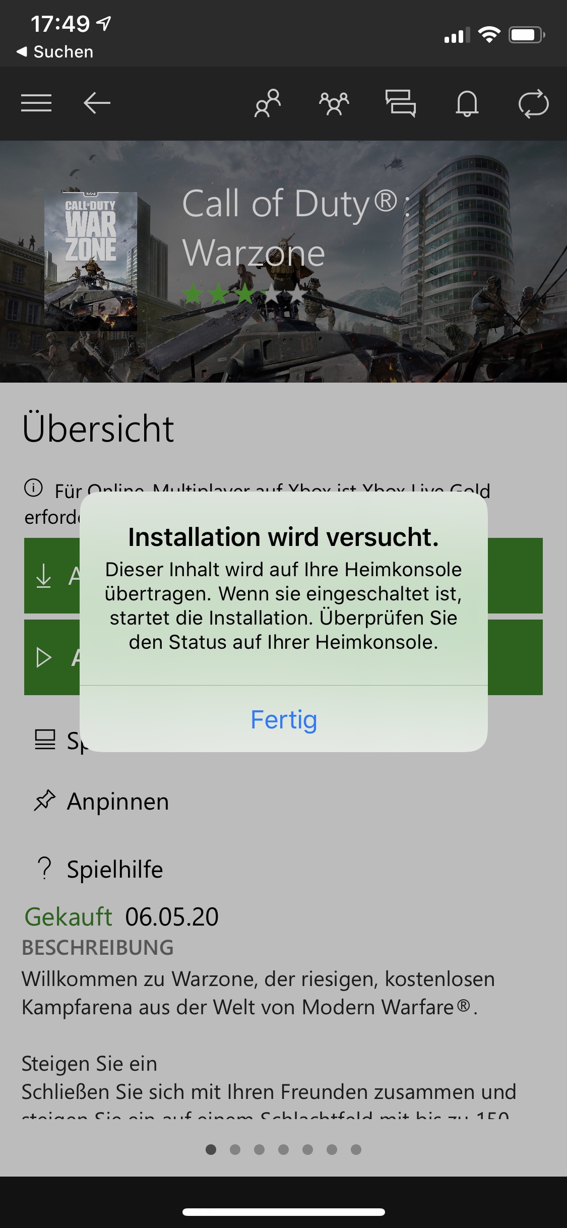 Xbox App: Zeigt an: "Installation wird versucht" (Siehe Screenshot)
