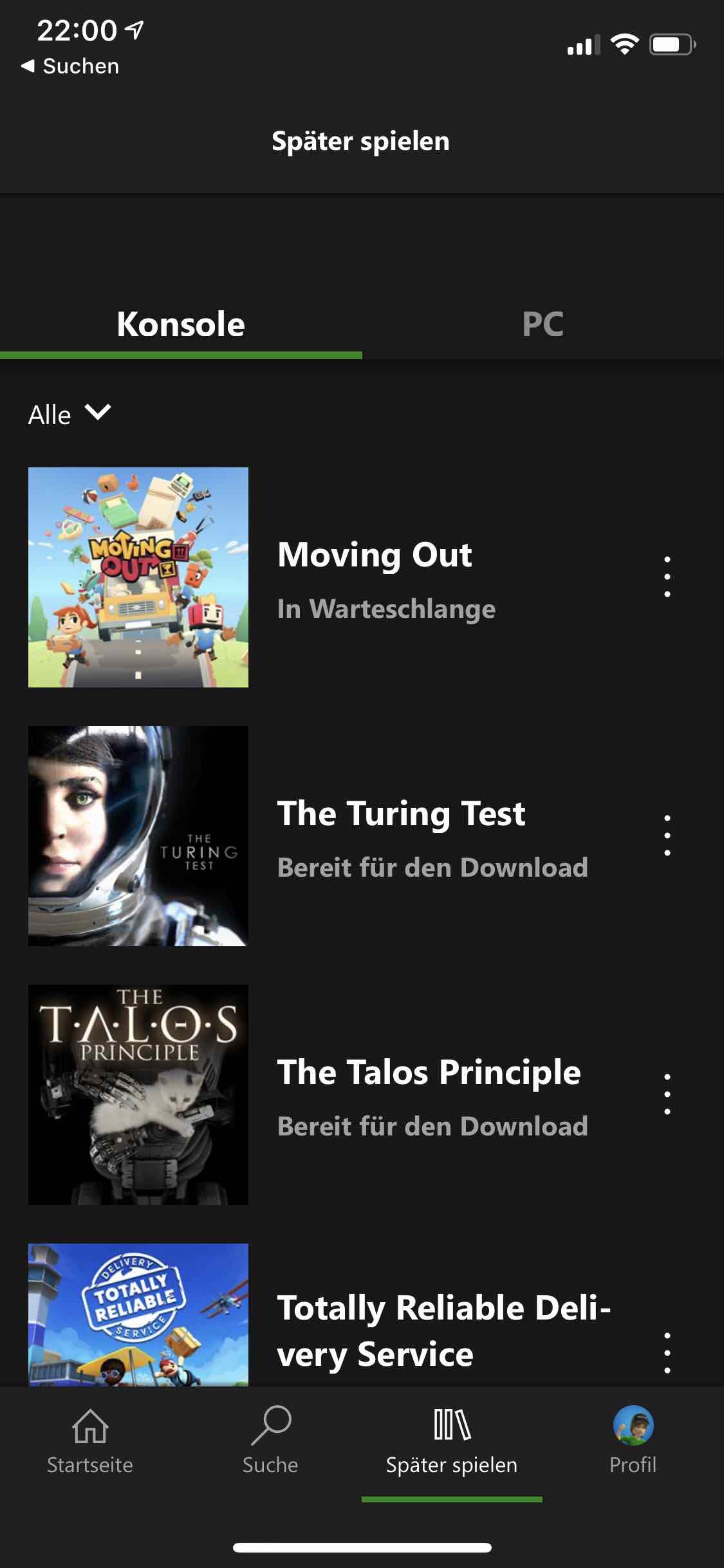 Xbox Gamepass App: Hat gerade funktioniert einen Download in die Warteschleife zu stellen.